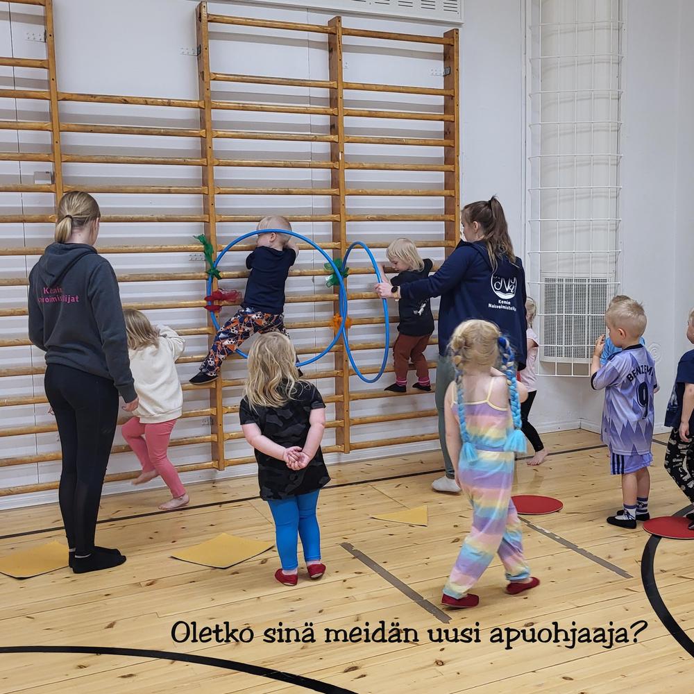 Nyt olisi apuohjaajan paikkaa tarjolla maanantaille 1.-3. -luokkalaisten NinjaGym-ryhmään ja keskiviikon 3-4 -vuotiaiden Liikuntaleikkikouluun.