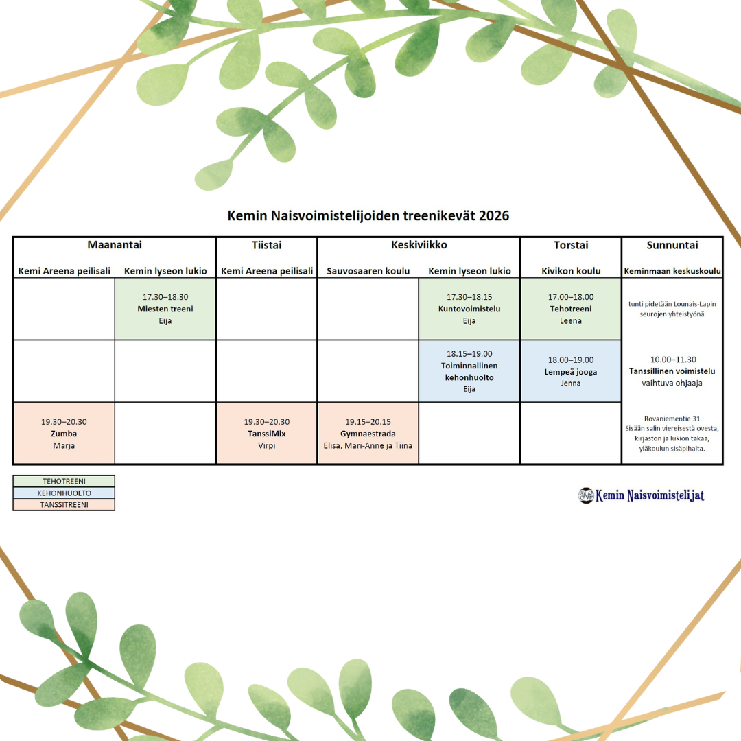 Aloitamme kevätkauden 7.1.2026. Emme pidä tunteja hiihtolomalla (vko 10) emmekä pääsiäisen aikaan torstaista 2.4.2026 maanantaihin 6.4.2026.